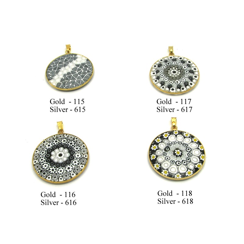 Murrina / Millefiori Pendant in Sterling Silver, San Marco Design, 26 mm in diameter