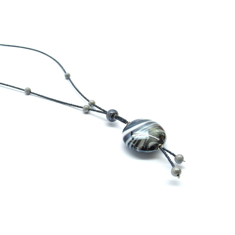 Murano Glass Necklace, Mod. Olivia (45 cm) made with beads 30 mm in diameter, made with a seed beads (conteria) necklace, available in 5 colours, with insertions foil, in Silver 925 and Gold 24 kt, made entirely handmade by Murano master glass-makers with the lampwork technique, in our Factory in Murano Venice - Italy.