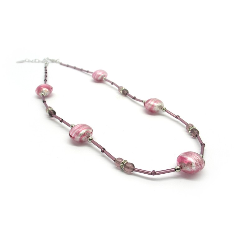 Murano Glass Necklace, Mod. Emily (45 cm) made with beads 20 mm in diameter, available in 3 colours, with insertions foil, in Silver 925 and Gold 24 kt, made entirely handmade by Murano master glass-makers with the lampwork technique, in our Factory in Murano Venice - Italy.