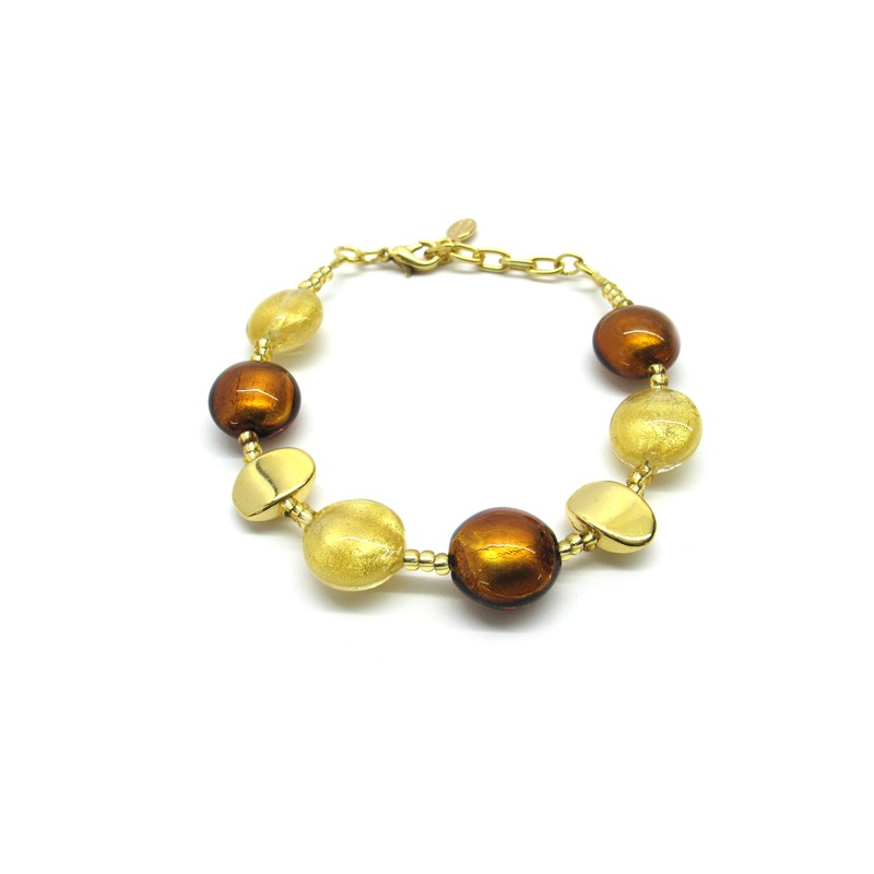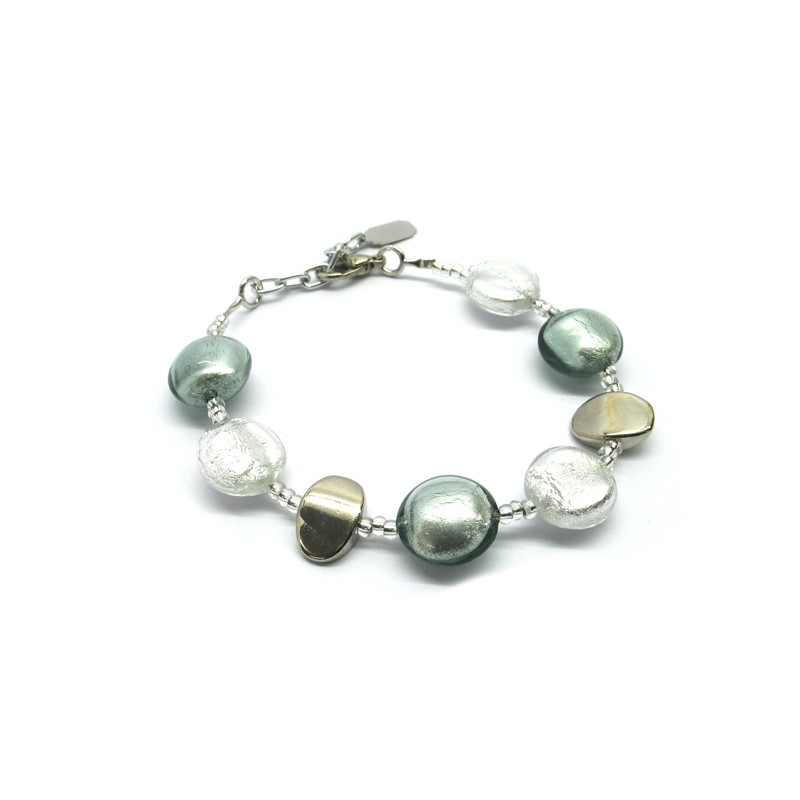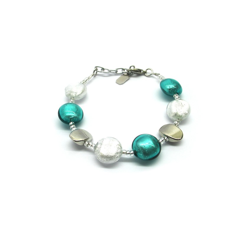 Murano Glass Bracelet, Mod. Francesca (21 cm) made with beads 20 mm in diameter, available in 5 colours, with insertions foil, in Silver 925 and Gold 24 kt, made entirely handmade by Murano master glass-makers with the lampwork technique, in our Factory in Murano Venice - Italy.