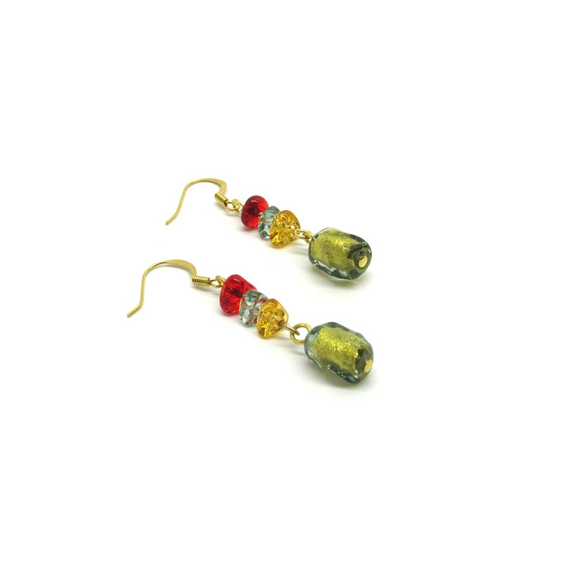 Murano Glass Earrings, Mod. Asola, made with beads 12x8 mm in diameter, available in 4 colours, made entirely handmade by Murano master glass-makers with the the lampwork technique, in our Factory in Murano Venice - Italy.