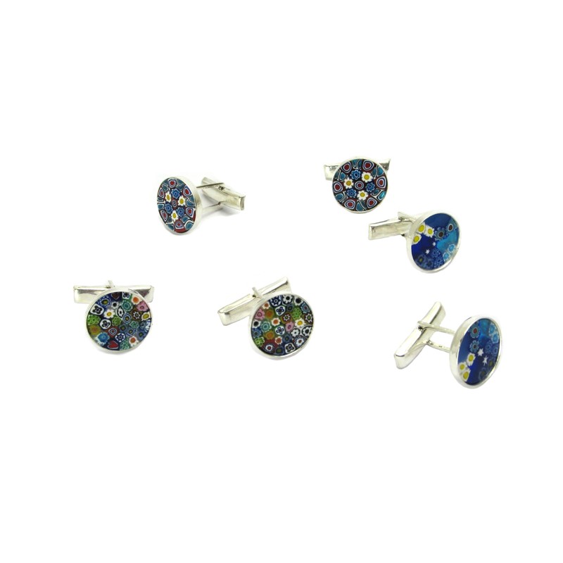 Sterling Silver Cufflinks, made with Murrina, 15 mm in Diameter, made entirely handmade by our Murano master glass-makers with Murrina's Glass technique, in our Factory in Murano Venice - Italy.