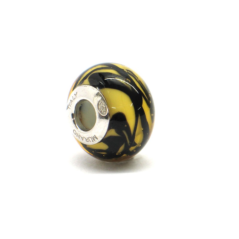Pandora Style Bead (Mod. RTG1) in authentic Murano Glass and 925 Italian Sterling Silver, made with bead 15x11 mm in diameter, Hole diameter 4.3 mm (the hole is standard, and is compatible with all the bracelets, charms, necklaces, of the best brands) the beads are made entirely handmade by Murano master glass-makers with the the lampwork technique, in our Factory in Murano Venice - Italy (Silver core carved : Murano - Italy - 925) Pandora Style Beads are perfect for building up your own unique bracelet, earrings or necklace in the your style.