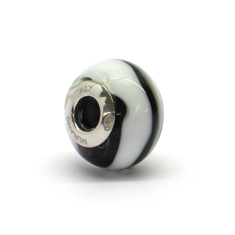 Pandora Style Bead (Mod. RNV13) in authentic Murano Glass and 925 Italian Sterling Silver, made with bead 15x11 mm in diameter, Hole diameter 4.3 mm (the hole is standard, and is compatible with all the bracelets, charms, necklaces, of the best brands) the beads are made entirely handmade by Murano master glass-makers with the the lampwork technique, in our Factory in Murano Venice - Italy (Silver core carved : Murano - Italy - 925) Pandora Style Beads are perfect for building up your own unique bracelet, earrings or necklace in the your style.