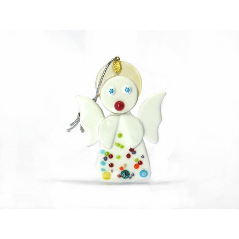 Murano Glass Angel Christmas Ornament, Mod. Angelo (80x60 mm) available in white color, made entirely handmade by Murano master glass-makers with the the Glass Sheet technique, in our Factory in Murano Venice - Italy.