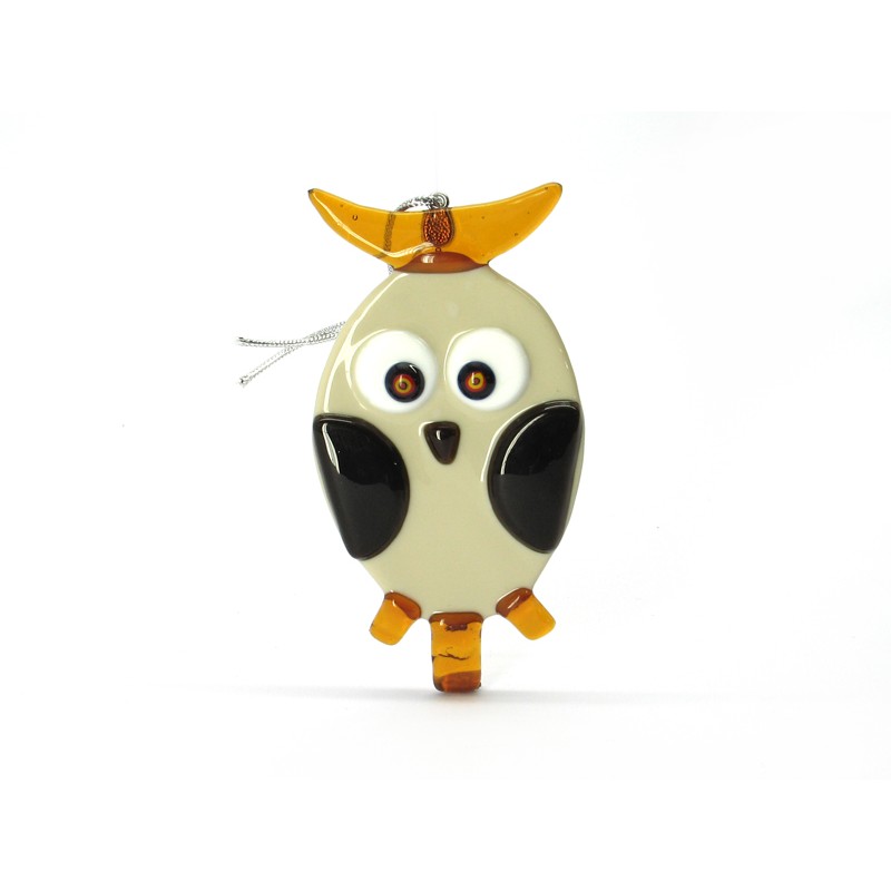 Murano Glass Owl Christmas Ornament, Mod. Civetta (100x50 mm) available in brown color, made entirely handmade by Murano master glass-makers with the the Glass Sheet technique, in our Factory in Murano Venice - Italy.