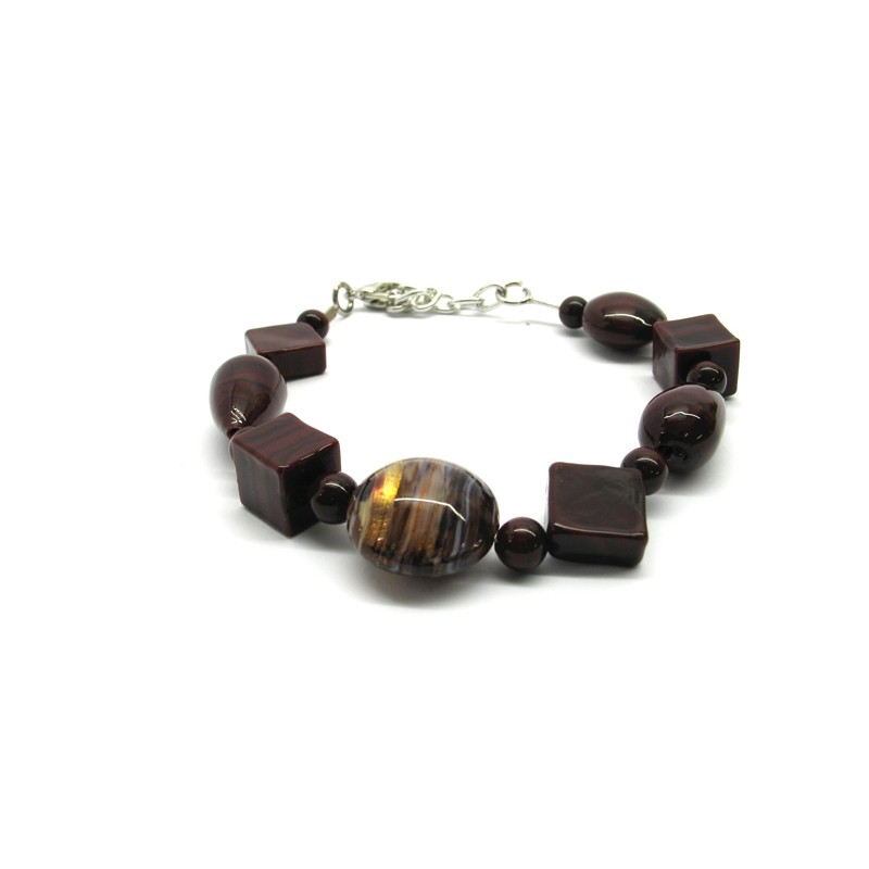Murano Glass Bracelet, Mod. Annamaria (21 cm) made with beads 14 mm in diameter, available in 2 colours, with insertions foil, in Silver 925 and Gold 24 kt, made entirely handmade by Murano master glass-makers with the lampwork technique, in our Factory in Murano Venice - Italy.