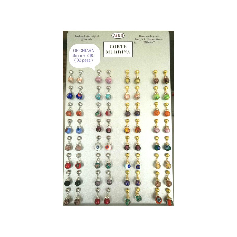 Window Display, with 32 Pair Murano glass earrings, with rhinestone, Mod. Chiara, made with beads 8 mm in diameter, with insertions foil, in Silver 925 and Gold 24 k, made entirely handmade by Murano master glass-makers with the the lampwork technique, in our Factory in Murano Venice - Italy.