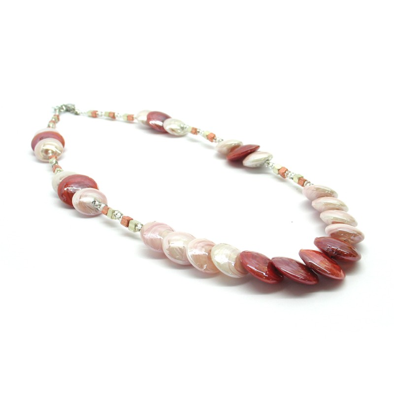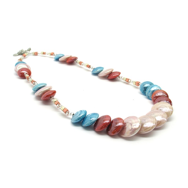 Murano Glass Necklace, Mod. Monica (50 cm) made with flat beads 16 mm in diameter, available in 3 colours, with insertions foil, in Silver 925 and Gold 24 kt, made entirely handmade by Murano master glass-makers with the lampwork technique, in our Factory in Murano Venice - Italy.