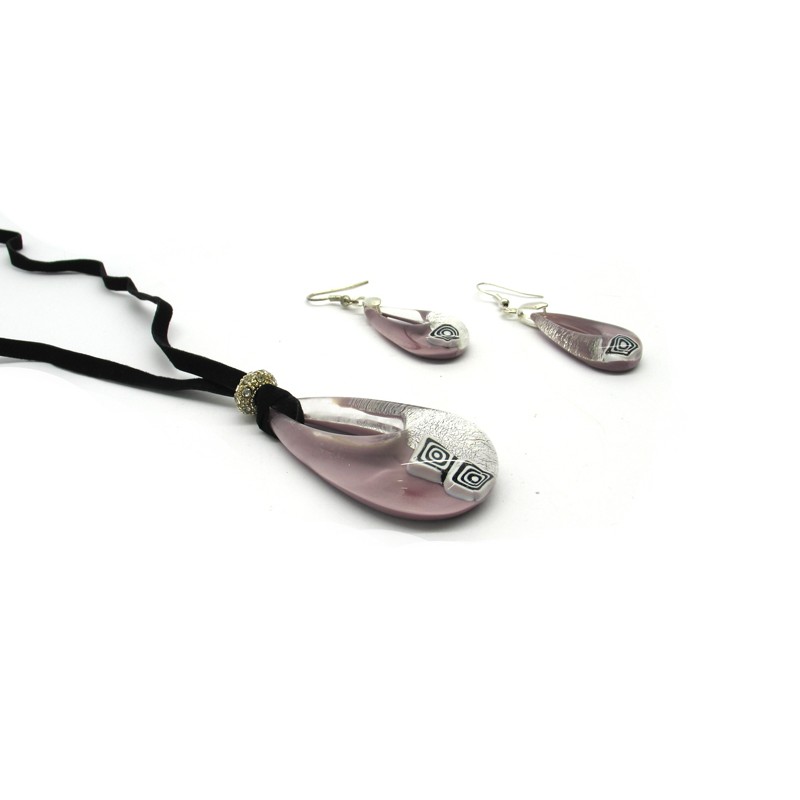 70 % Off - Murano Glass Set Mod. Veve Style(50 cm) made with Pendant (50x30 mm) and Earrings (35x20 mm) available in 4 Colours, made entirely handmade by Murano master glass-makers with the lampwork technique, in our Factory in Murano - Italy, with beads in silver 925 foil and 24 kt gold foil.