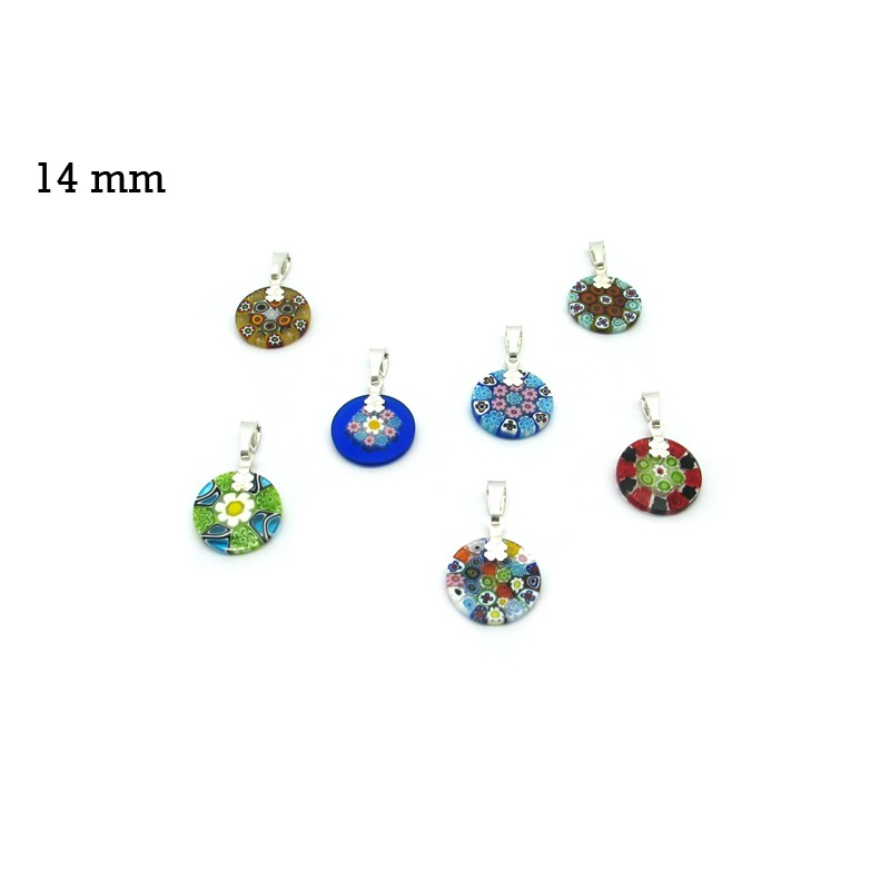 Murrina Millefiori Pendant, Mod. Fortuny (14 mm in diameter), hook in Sterling Silver 925/000, available in 15 assorted colours, made entirely handmade by Murano master glass-makers with the lampwork technique, in our Factory in Murano - Italy.