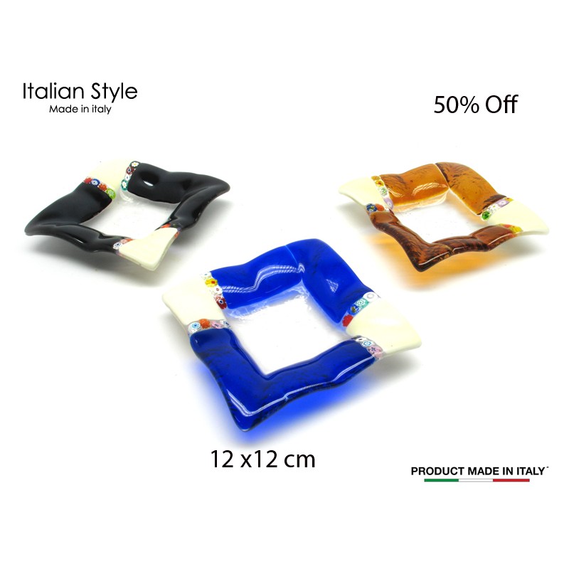 Murano Glass Saucer 12x12 cm (Piatto Gondola) available in 3 different colours,made entirely handmade by our Murano master glass-makers with the glass sheet technique, and silver 925 and gold 24 kt insertions, Murrina's Glass technique, in our Factory in Murano Venice - Italy.