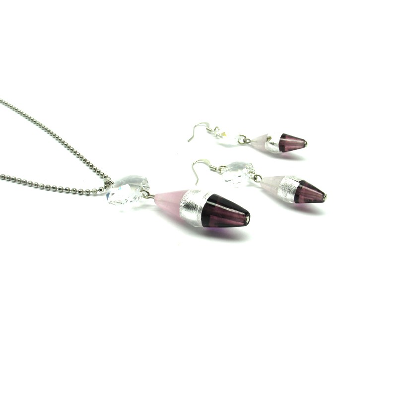 Murano Glass Set Mod. May (52 cm) metal chain, with rhinestones and pearl 37x14, earrings with pearl 27x10 mm,available in 4 assorted Colours, made entirely handmade by Murano master glass-makers with the lampwork technique, in our Factory in Murano - Italy, with beads in silver 925 foil and 24 kt gold foil.