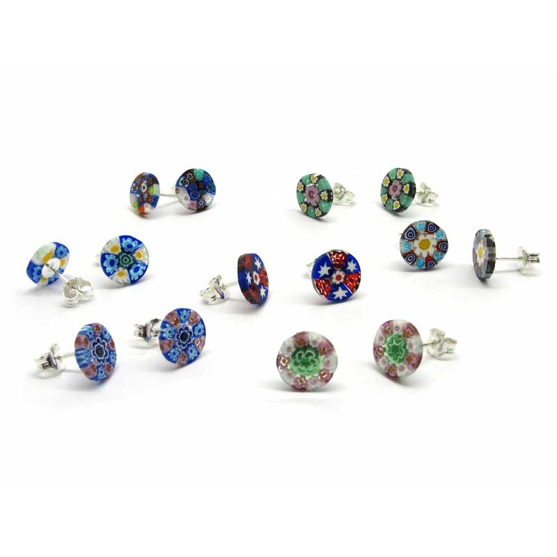 Orecchini in vetro di Murrina, Mod. Rondò (Diam. 10 mm) disponibili in 15 colori asssortiti, perno e farfallina di chiusura in Argento 925%, realizzati interamente a mano dai Maestri Vetrai Veneziani, nella nostra Fabbrica a Murano - Venezia, con la tecnica della lavorazione a Murrina