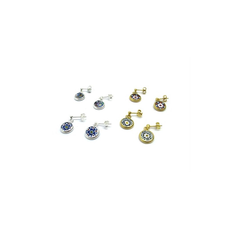 Orecchini in vetro di Murrina (F10) con bordo e gancetto in Argento 925% (Diam. 10 mm) disponibili in 15 colori asssortiti, realizzati interamente a mano dai Maestri Vetrai Veneziani, nella nostra Fabbrica a Murano - Venezia, con la tecnica della lavorazione a Murrina