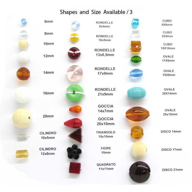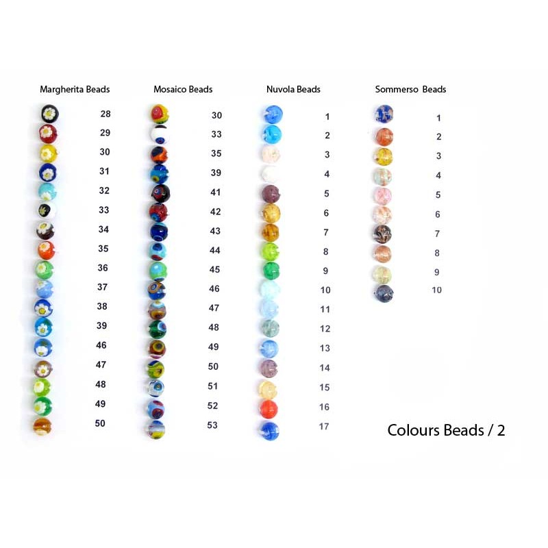 Data la vastità dei colori e forme si consiglia di inviare un'email per la richiesta delle Perle: info@murrina.it