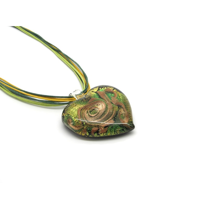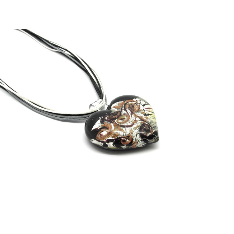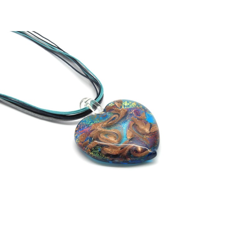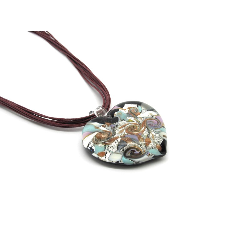 Collana con Cuore in Vetro di Murano, Mod. Romantica (45 cm) diam.45x45 mm, disponibile in 5 Colori, con inserti in foglia Argento 925 e Oro 24 Kt, prodotta e realizzata interamente a mano dai Maestri Vetrai Muranesi con la tecnica della lavorazione lume, nella nostra Fabbrica a Murano - Venezia.