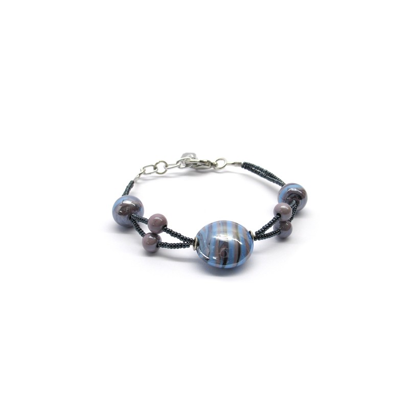 Bracciale in Vetro di Murano Mod. Jessica (21 cm) con 5 perle...