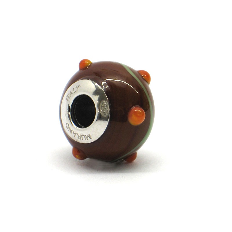 Perla style Pandora (RZP8) in autentico Vetro di Murano e Argento 925, Pungiglioni Design, Diam. 15x11mm, foro 4.3 (il foro è standart, ed è compatibile con tutti i bracciali, chrms, e collane delle migliori marche) la coppetta centrale è in Argento 925, con stampa: Murano - Italy - 925, la Perla è prodotta e realizzata interamente a mano dai Maestri Vetrai Muranesi con la tecnica della lavorazione lume, nella nostra Fabbrica a Murano - Venezia, con questo tipo di perla si possono realizzare dei bracciali, orecchini e delle collane, personalizzate e uniche nel loro genere.