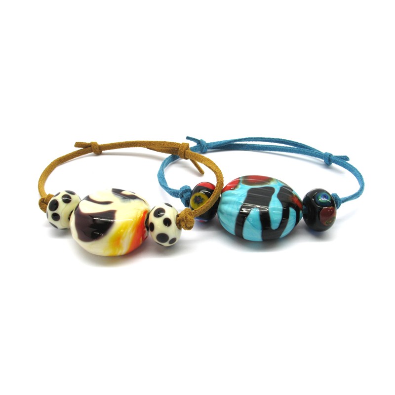 70% di sconto - Bracciale in vetro di Murano Mod. Sahara, con perle soffiate 28x15 mm, disponibile in Colori Assortiti, prodotto e realizzato interamente a mano dai Maestri Vetrai Muranesi con la la tecnica della lavorazione a Murrina nella nostra Fabbrica a Murano - Venezia.