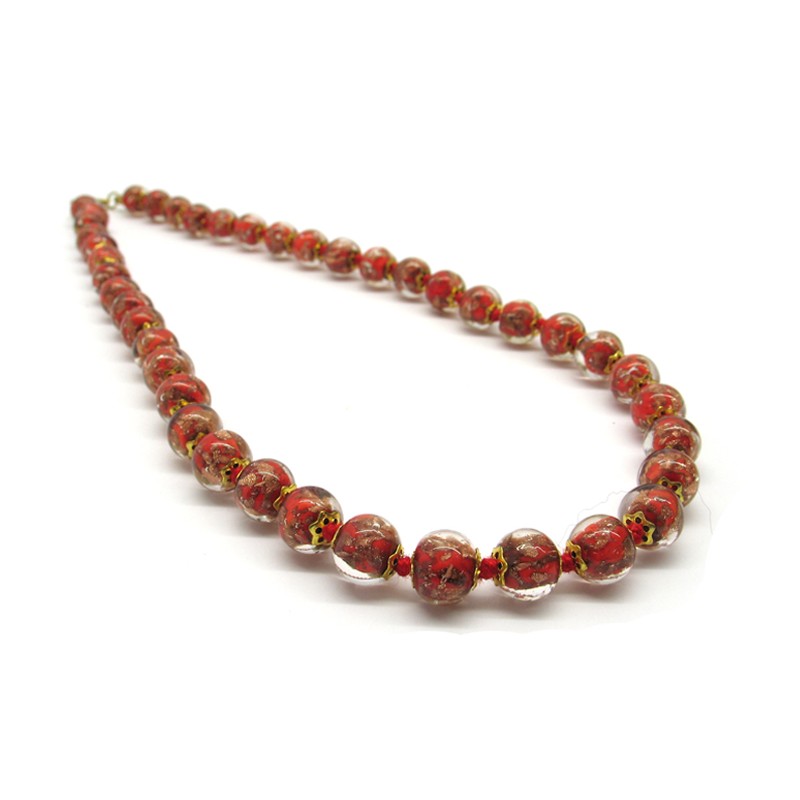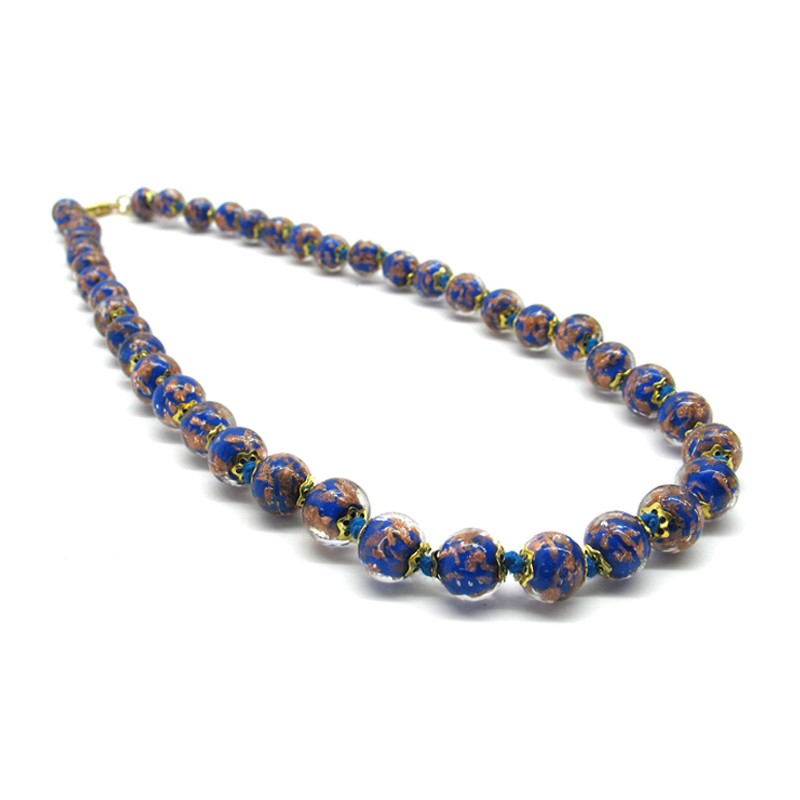 Collana in Vetro di Murano Mod. Sommerso (60 cm) con Perle diam.8 mm, disponibile in 5 Colori, con inserti in foglia Argento 925 e Oro 24 Kt, prodotta e realizzata interamente a mano dai Maestri Vetrai Muranesi con la tecnica della lavorazione lume, nella nostra Fabbrica a Murano - Venezia.