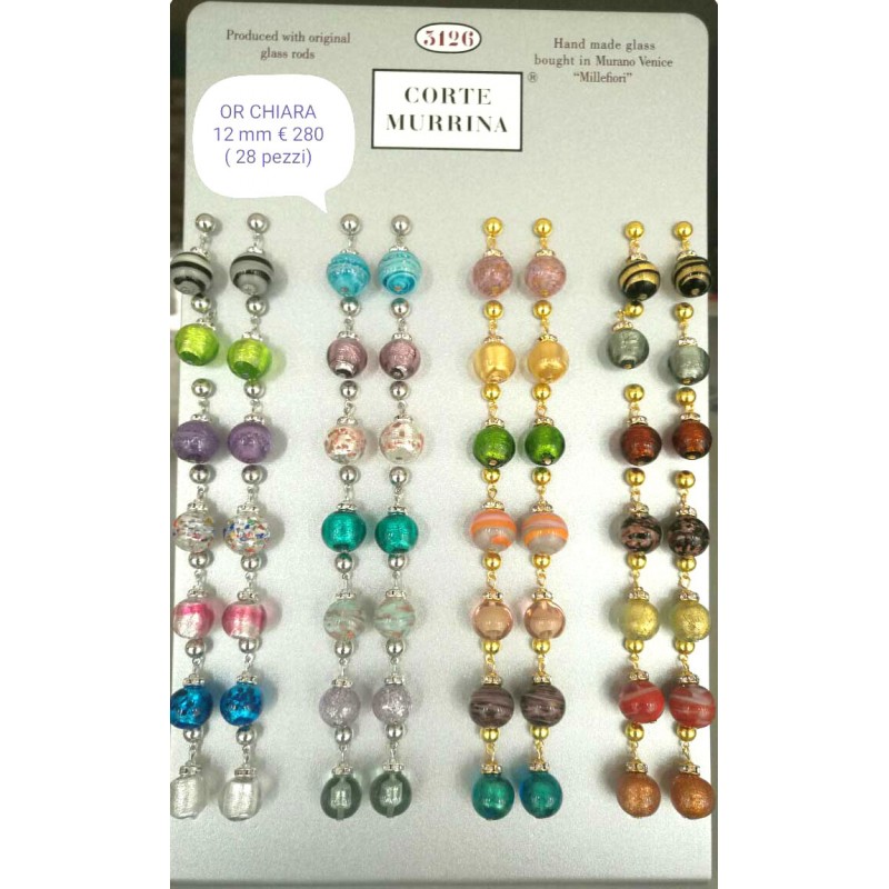 Epositore da Vetrina, con 28 Orecchini con Strass e Vetro di Murano Mod. Chiara, diam.12 mm, disponibili in Gold e Chrome, con inserti in foglia Oro e Argento, prodotti e realizzati interamente a mano dai Maestri Vetrai Muranesi con la tecnica della lavorazione lume, nella nostra Fabbrica a Murano - Venezia.