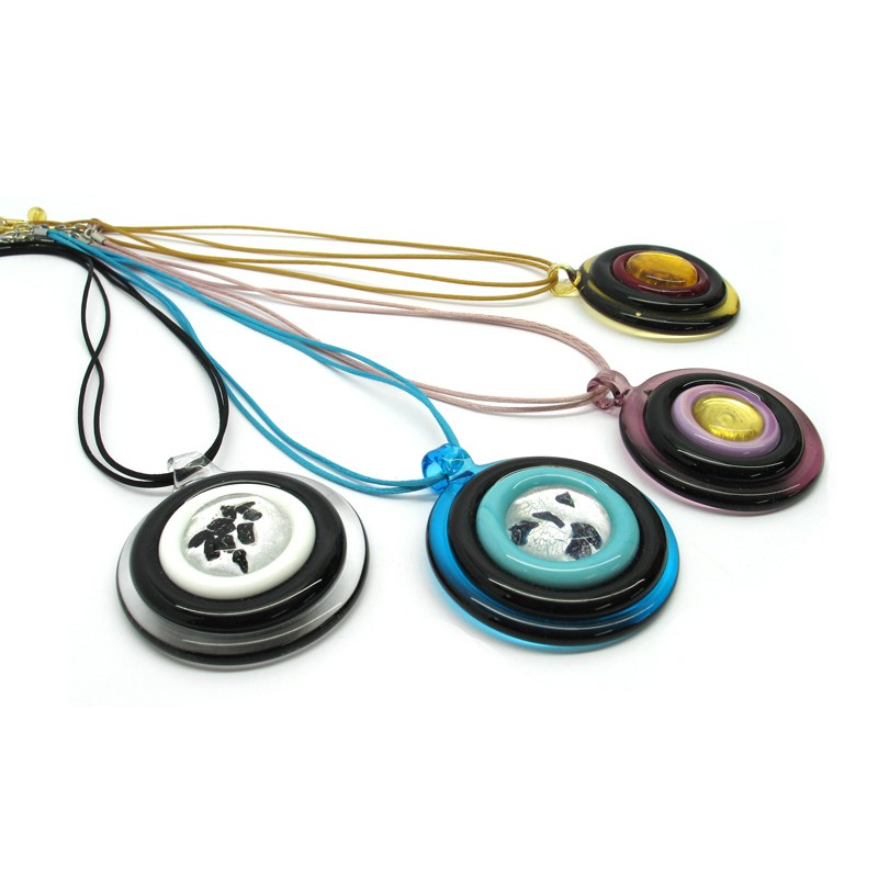 70% di Sconto, Collana in Vetro di Murano Mod. Bersaglio (diametro pendente 58 mm) cavetto in doppio cotone (45 cm) disponibile in Colori assortiti, realizzata interamente a mano dai maestri Vetrai Muranesi, con la tecnica della lavorazione lume, nella nostra Fabbrica a Murano - Venezia, con perle in foglia Argento 925 e fogliaOro 24 kt.