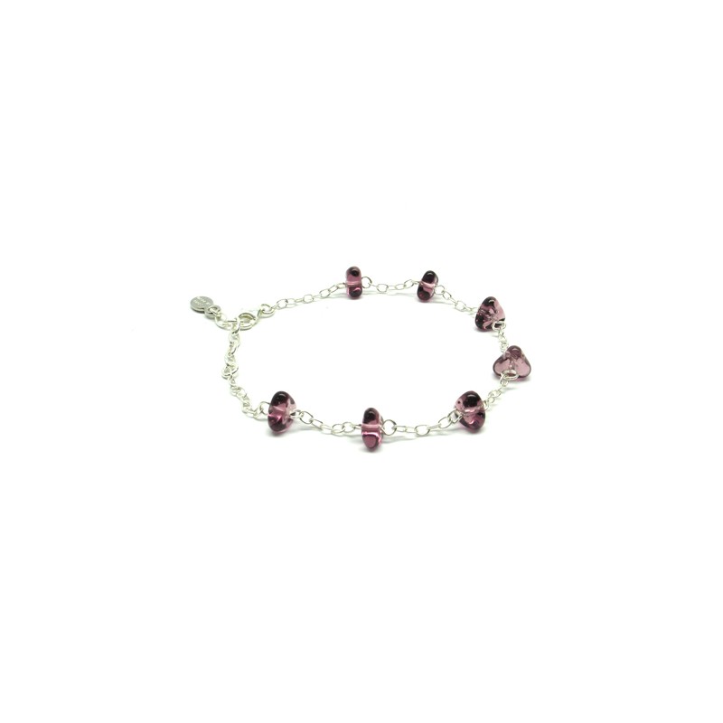 Bracciale in Argento 925% e 7 Perle di Murano, lunga 21 cm, Mod. Jolanda, prodotto interamente a mano dai Maestri Vetrai Muranesi con la tecnica della lavorazione a Murrina, nella nostra Fabbrica a Murano - Venezia.