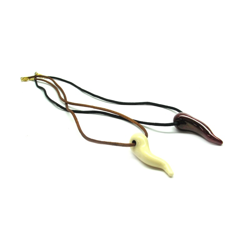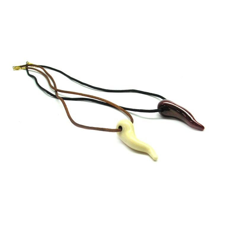 Cornetto in Vetro di Murano (Disponibile in 2 colori) con cavetto in cotone (43 cm) Mod. Collana Fortuna, prodotto e realizzato interamente a mano dai Maestri Vetrai Muranesi con la tecnica della lavorazione lume, nella nostra Fabbrica a Murano - Venezia.