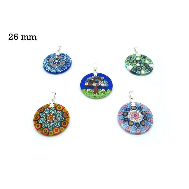 Murrina Millefiori Pendente con gancetto in Argento 925% Diam. 26 mm, disponibile in 15 colori asssortiti, realizzato interamente a mano dai Maestri Vetrai Veneziani, nella nostra Fabbrica a Murano - Venezia, con la tecnica della lavorazione a Murrina